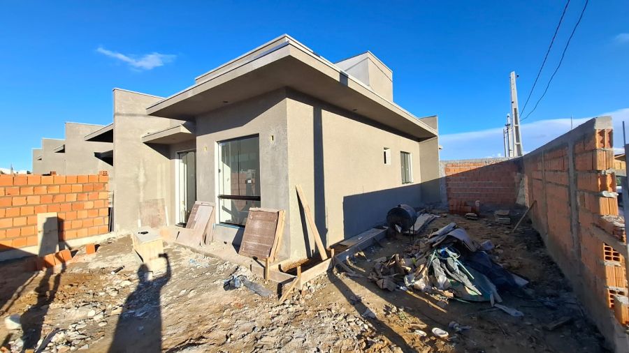 A casa geminada dispõe de 2 dormitórios, oferecendo uma planta prática e bem distribuída. Conta com 1 banheiro, 1 sala para convivência e 1 vaga de garagem, atendendo às necessidades do dia a dia com conforto e organização.