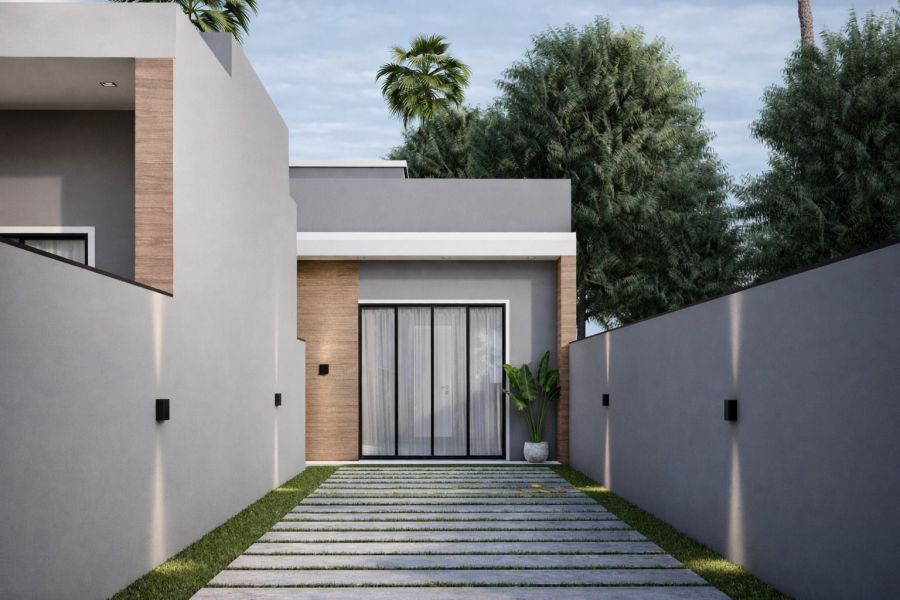 O imóvel possui uma planta racional e bem distribuída, composta por dois dormitórios, sala de estar, banheiro social e uma vaga de garagem. O projeto prioriza a funcionalidade dos ambientes, garantindo otimização de espaço e conforto térmico. Na área externa, a residência oferece uma área de serviço individualizada e churrasqueira, diferencial que agrega valor imediato ao patrimônio e amplia as possibilidades de lazer e bem-estar.